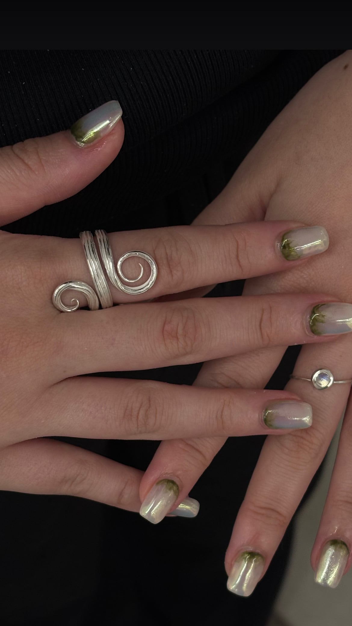 静かにめぐる心のかたち。ミツローの引き目から生まれた柔らかな曲線が、感情のうねりをそっと受けとめる。変わりながら、戻りながら、ただ在ることの美しさを指に。