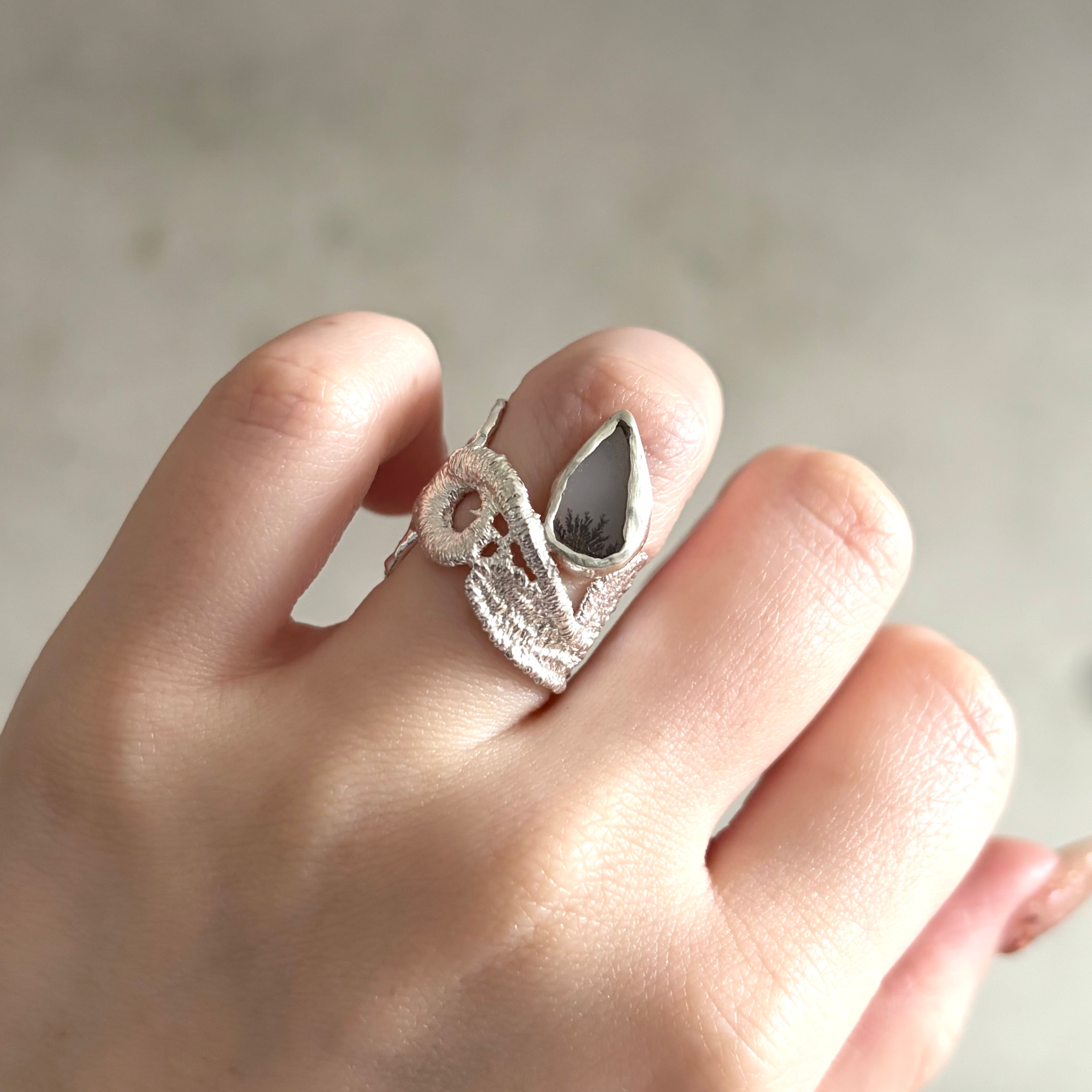 石は水墨画のような模様のデンドリックアゲートをセッティング。