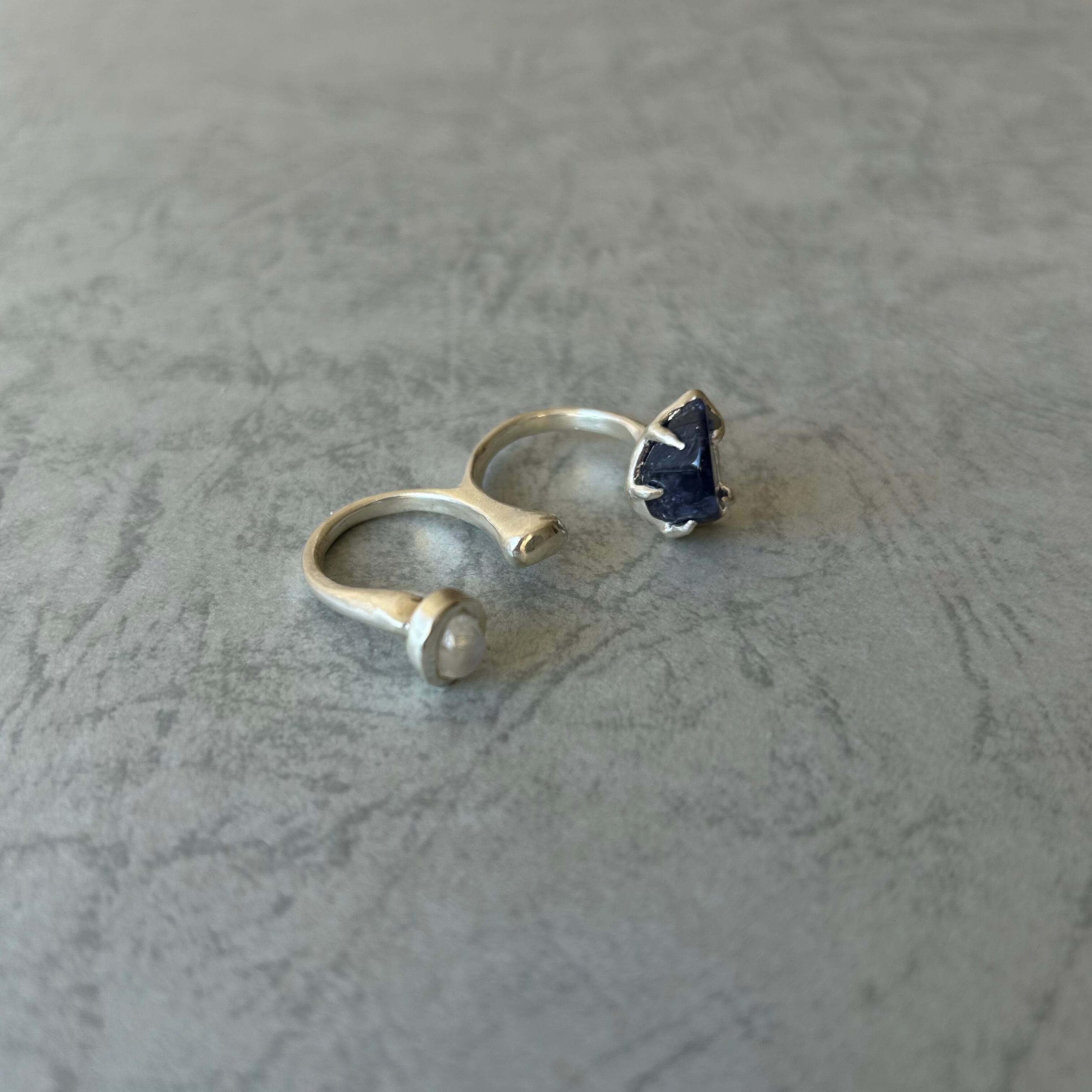 天然石をあしらったダブルリング。
